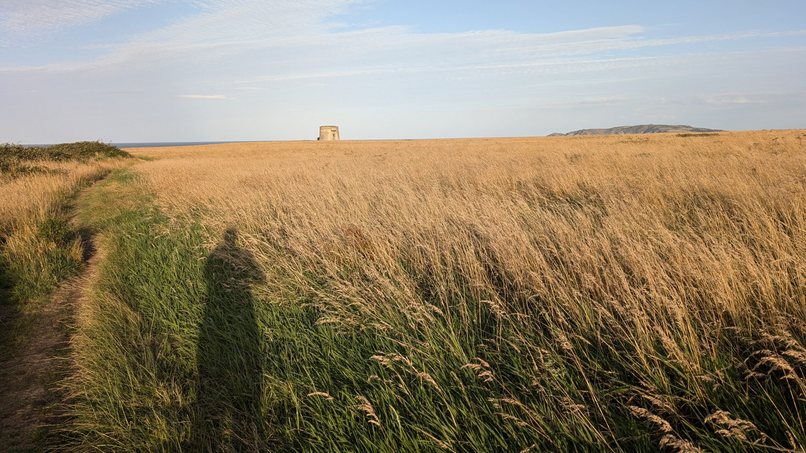 On the south side of the bay the angular folds of the layered limestone and shale cliffs, some 20 metres high, are of interest to the geologists. The fossils in the rocks are some 325 million years old and the upper few metres of the cliff is made up of boulders clay deposited at the end of the ice age.